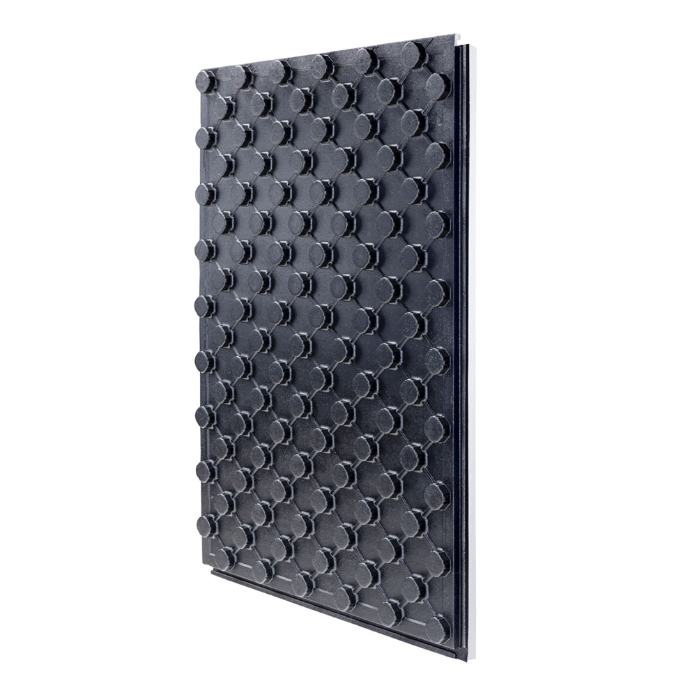Placas de gran formato fabricadas de poliestireno expandido moldeado de acuerdo a la norma EN-13163. Están recubiertas por una lámina plástica fina de color negro por su parte superior para proteger las nopas y a la vez hacer la función de barrera antivapor.